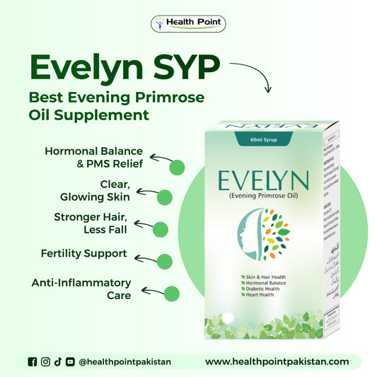 Evelyn SYP | Best Evening Primrose Oil Supplement in Pakistan – 100% Pure Cold-Pressed EPO for Hormonal Balance, Skin & Hair – Halal-Certified